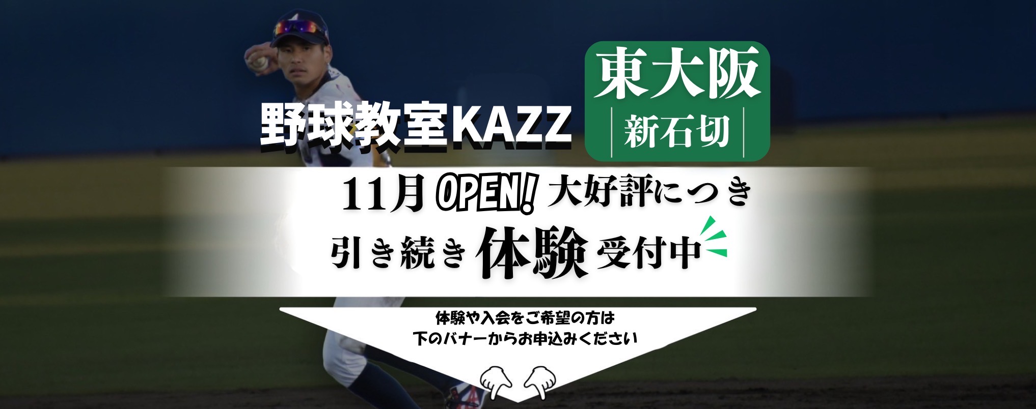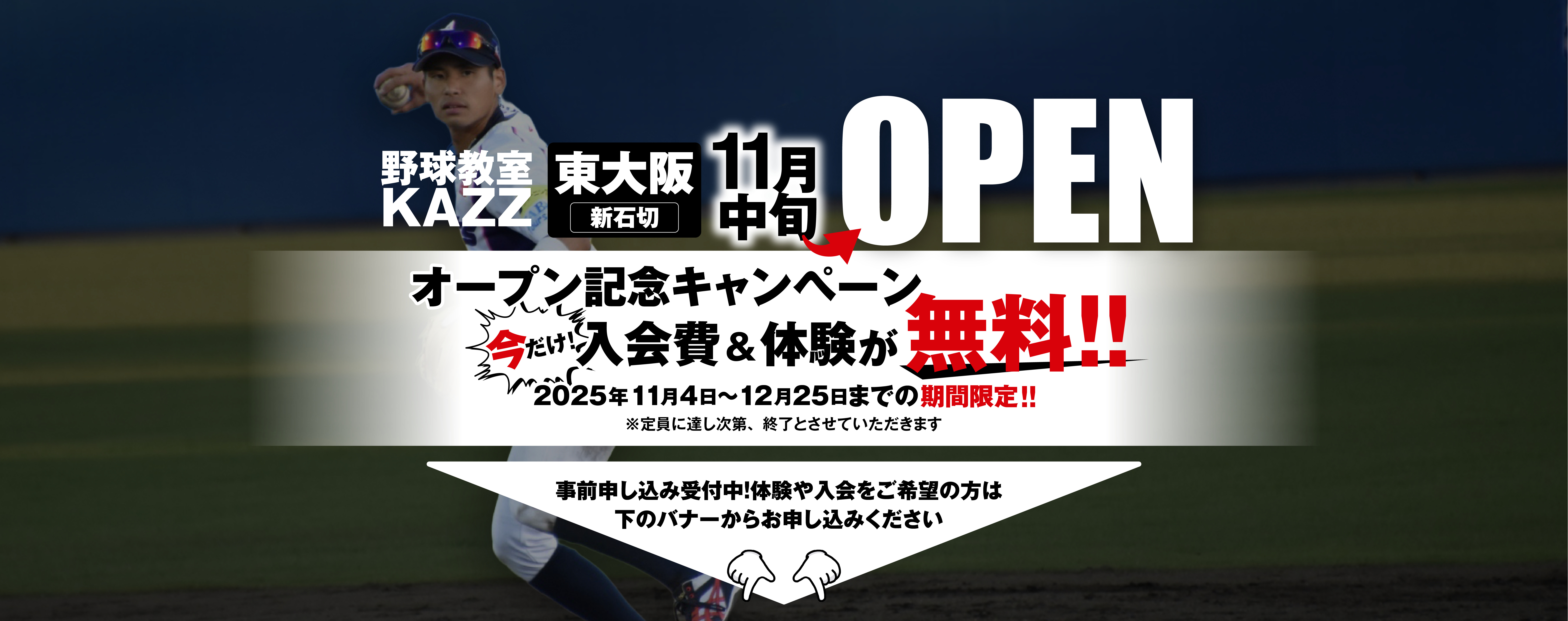 野球教室KAZZは、小学1年生から社会人・プロ選手まで幅広く対応している教室ですが、大阪市内に住む小学5年生〜中学3年生を対象とした