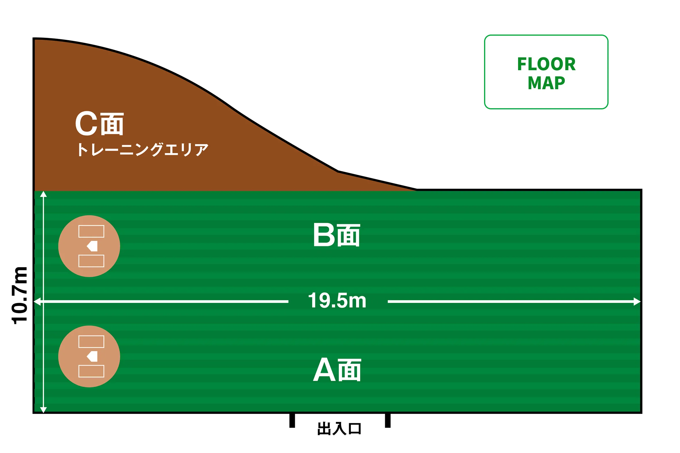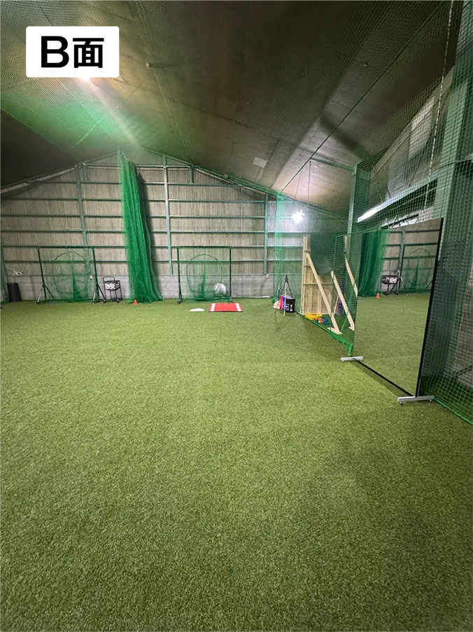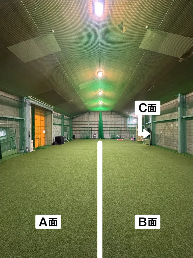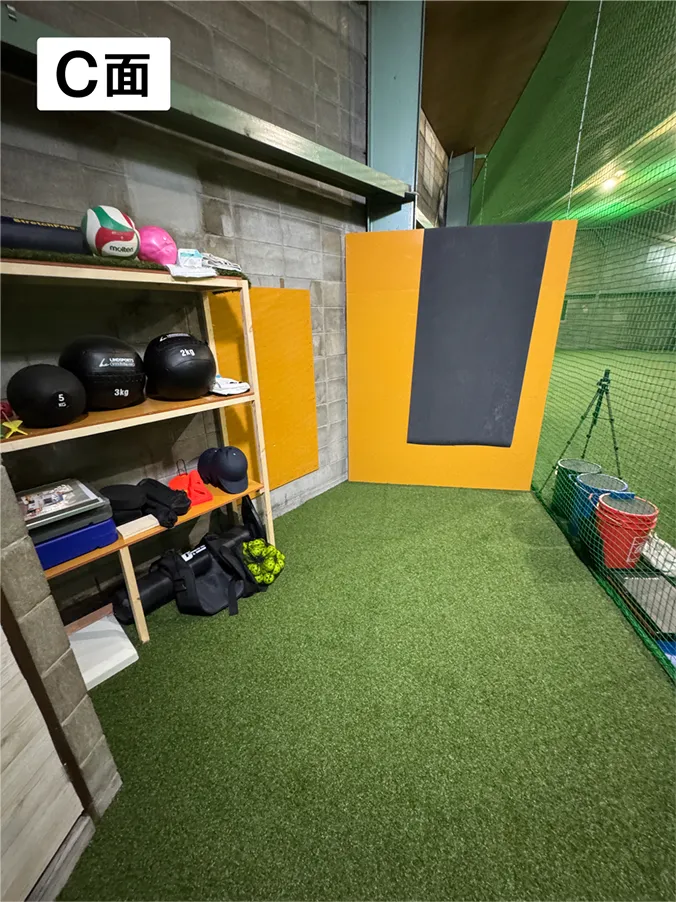 A面・B面でのバッティングやピッチングといった技術練習に加え、C面のトレーニングエリアでは、野球に必要な筋力や柔軟性を高めるフィジカル強化も可能です。