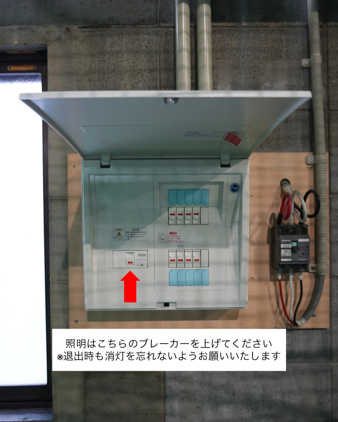 照明をご利用いただく場合は、最初にブレーカーを上げてから点灯してください。